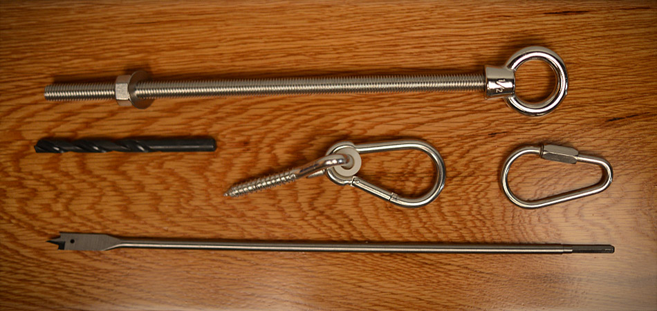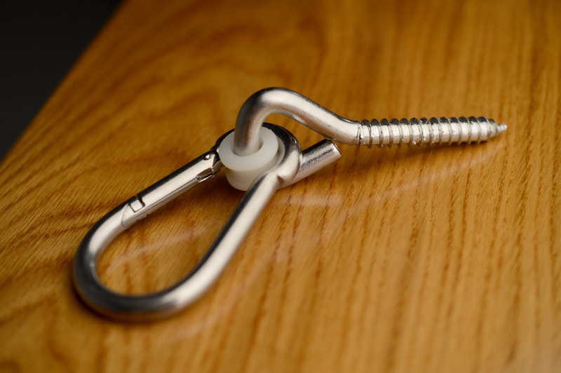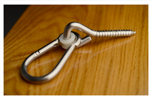 These stainless steel hangers make screwing into porch ceiling beams and other dimensional lumber a snap. The clip conveniently opens for easy seasonal swing removal. The plastic bushing is a nice feature which does away with any swinging associated squeaks.