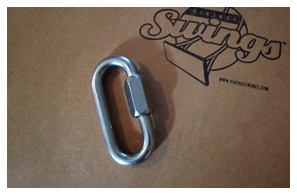 Attach a heavy duty quick link between the tree hanger and your rope for ease of future removal. Quick links are made of stainless steel and are load rated for 3900#s each. 3/8" diameter • 3.5"x1.75"